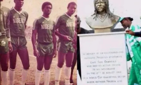 Samuel Okwaraji remains a revered figure in Nigerian sports history after his tragic death during a World Cup qualifier in 1989. He collapsed while playing for the Super Eagles against Angola at the National Stadium in Lagos. Since then, the stadium in his hometown of Orlu has served as a primary memorial to his contributions to national and state football.